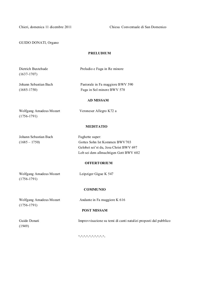 DOMENICA 11 DICEMBRE 2011, concerto del maestro Guido Donati.