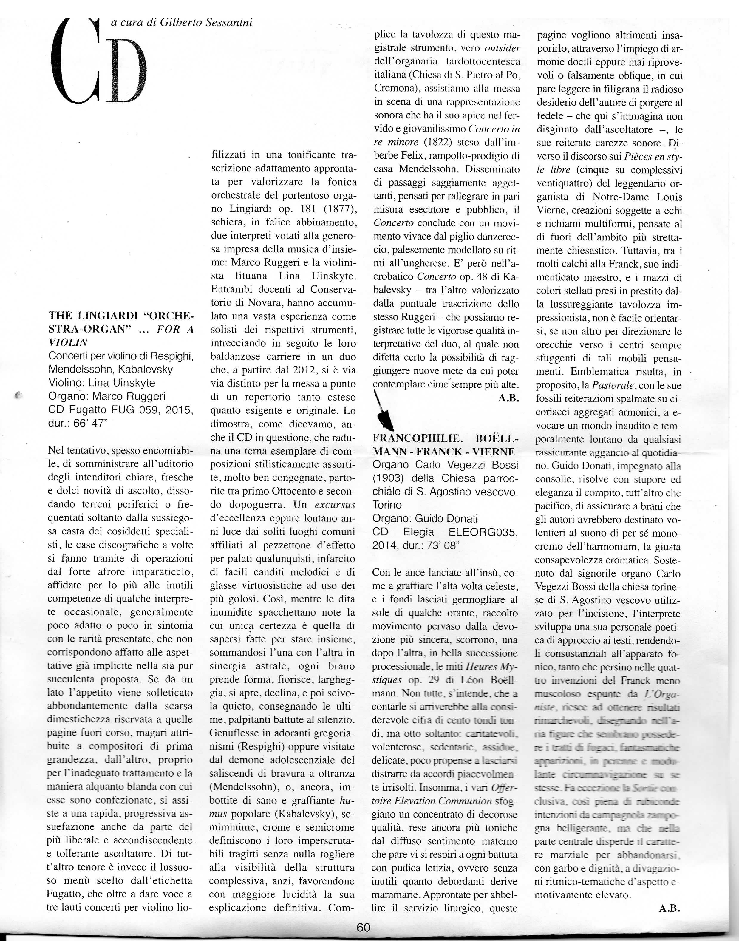 Aggiunta nella sezione dedicata alla rassegna stampa la recensione dei CD “FRANCOPHILIE – ELEGIA 2014” tratta dalla rivista “Arte Organaria e Organistica”, n.98 gennaio/marzo 2016.